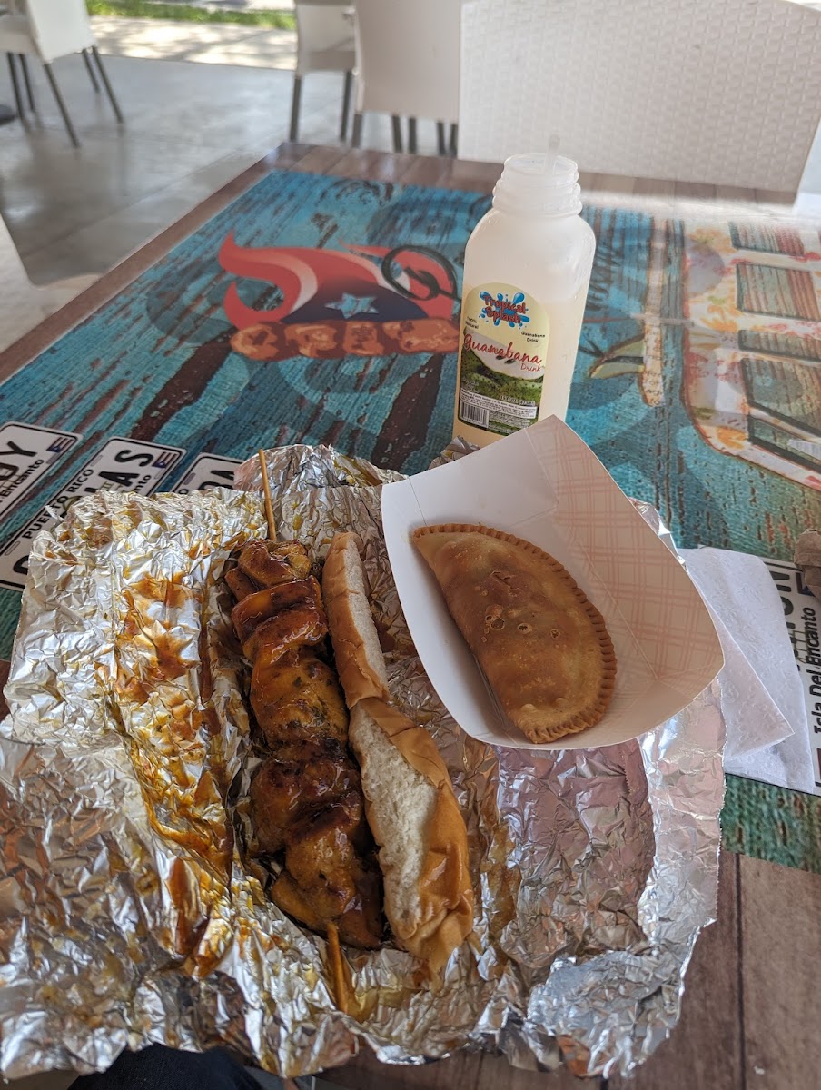 The menu leans heavily into pinchos, those iconic skewers that are a staple at island festivals and roadside stands. What stood out right away was how the meat is treated. The pork and chicken are marinated overnight using traditional adobo-style seasoning, a process that allows salt, garlic, and oregano to penetrate deeply instead of just coating the surface. Food science backs this up: studies published by the Institute of Food Technologists show that longer marination improves moisture retention and flavor absorption, especially in grilled meats. You can taste that difference here with every bite.